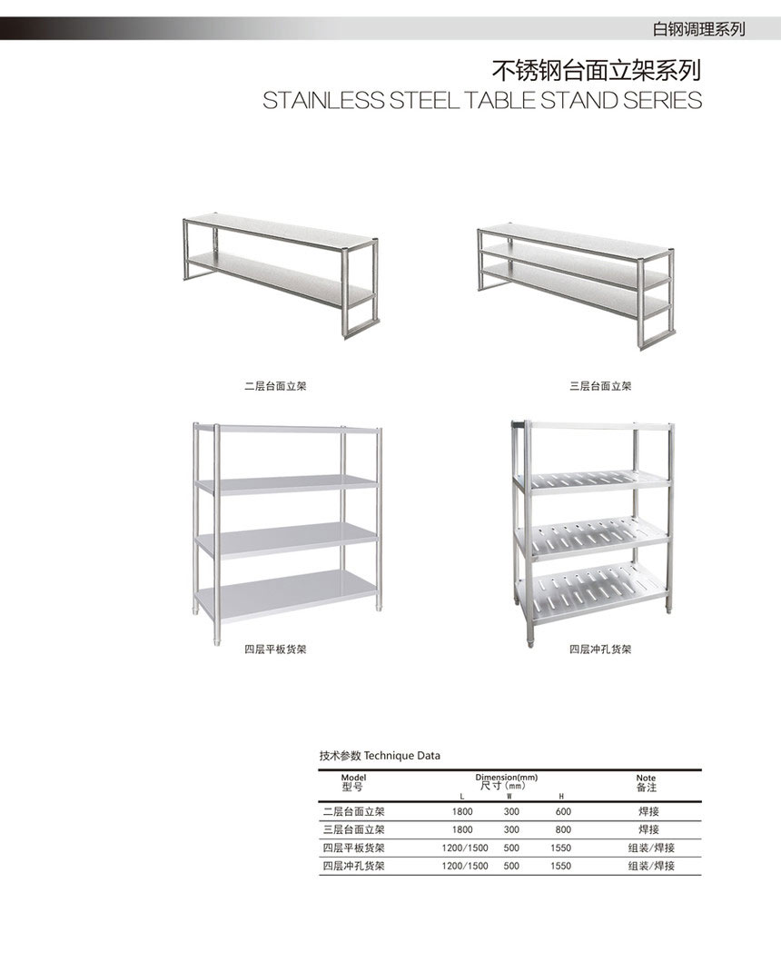 不銹鋼工作臺(tái)系列--二層臺(tái)面立架-三層臺(tái)面立架-四層平板貨架-四層沖孔貨架