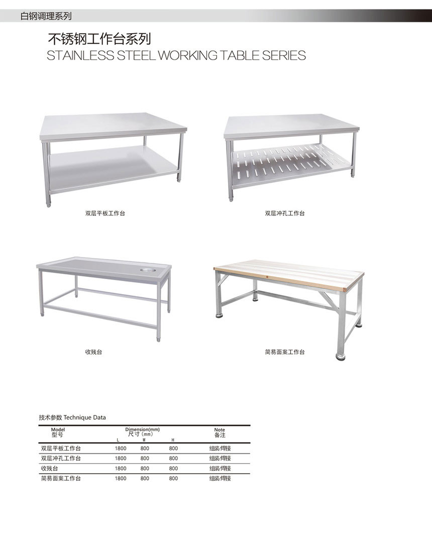 不銹鋼工作臺系列-雙層平板工作臺-雙層沖孔工作臺-收殘臺-簡易面案工作臺