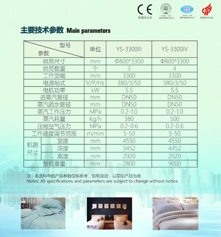 五、超高速脫水,脫去布草上更多水,縮短烘干和熨平時間,降低了工人工資,同時極大的降低了蒸汽和電費耗量,提高了工作效率。