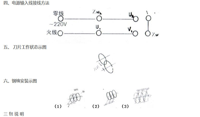 2、使用切肉機、先取出上面鋼梳,啟動電機?辞械镀欠裣騼(nèi)旋轉(zhuǎn),如向外旋轉(zhuǎn),請電工將線頭兌換一相。