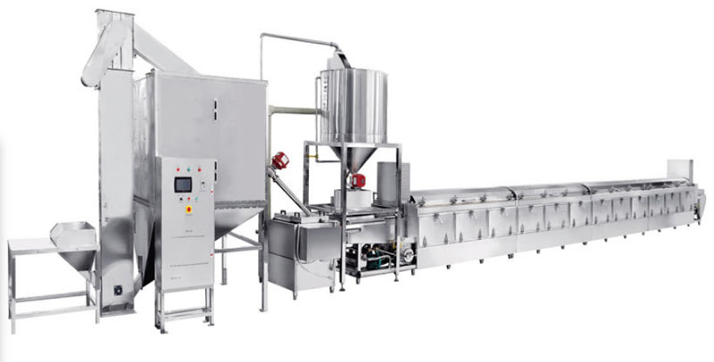 【主要結構】 主要由提升機.儲米倉、計量機、洗米機、浸泡充填機、炊燜飯機、米飯扒松機構組成